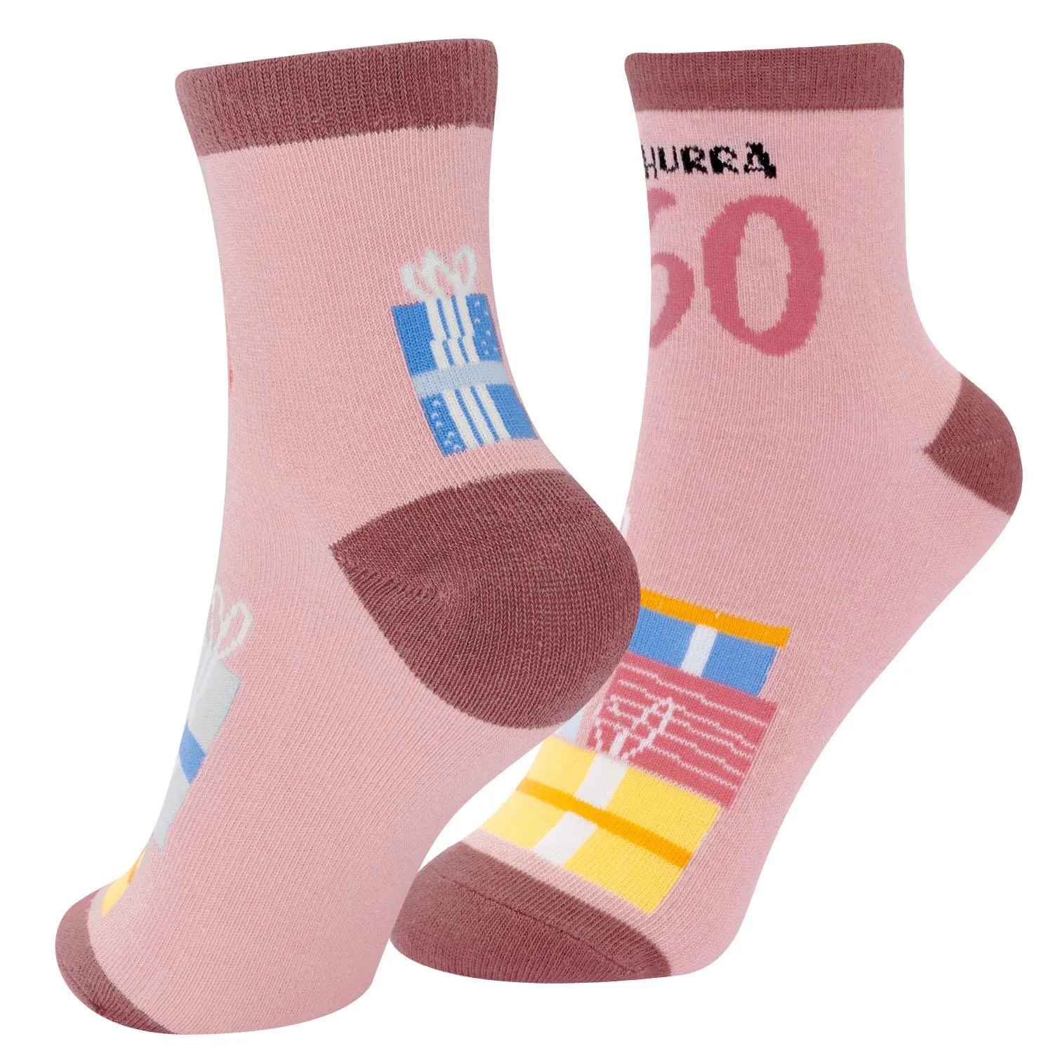 60 Jahre voller Geschichten und Abenteuer – das verdient Applaus! Mit den farbenfrohen Zaubersocken „Hurra 60“ trägst Du die Freude am Leben sichtbar an Deinen Füßen. Stilvoll, bequem und natürlich immer voller Elan!