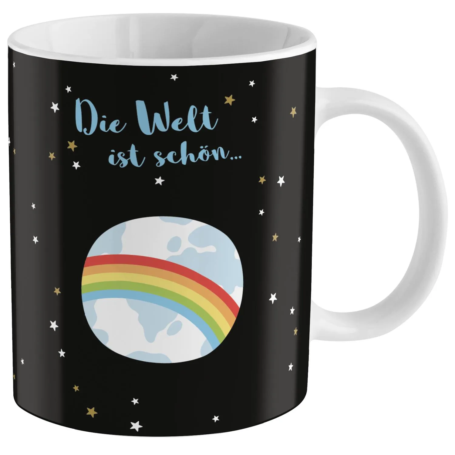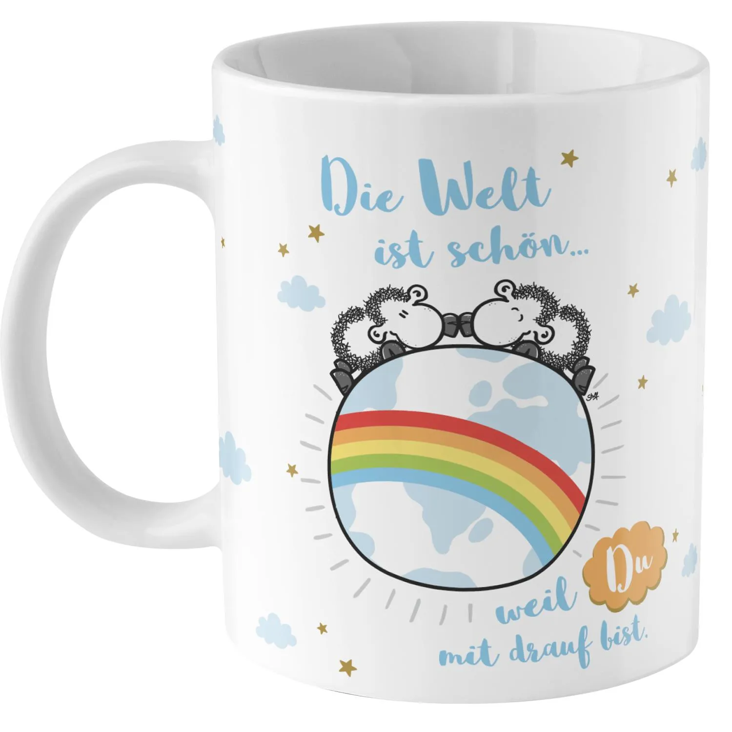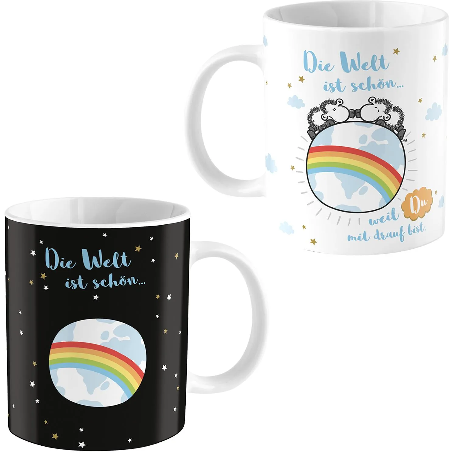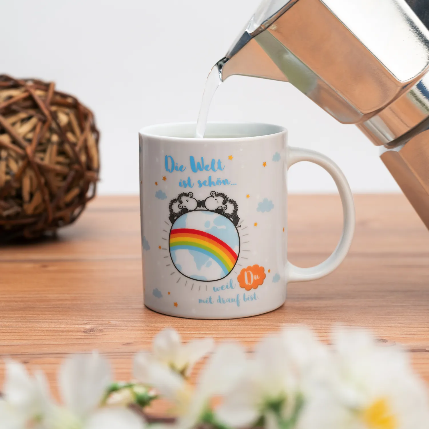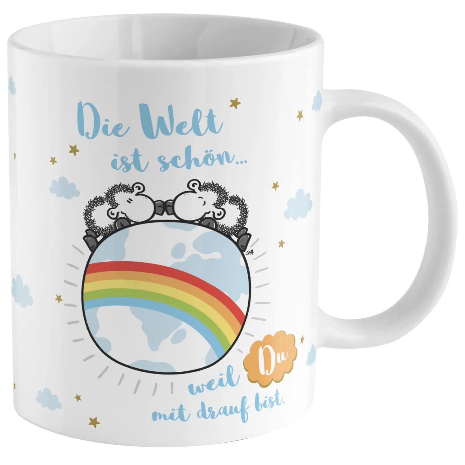 sheepworld 47060 Zaubertasse Motiv »Die Welt ist schön... weil Du mit drauf bist«