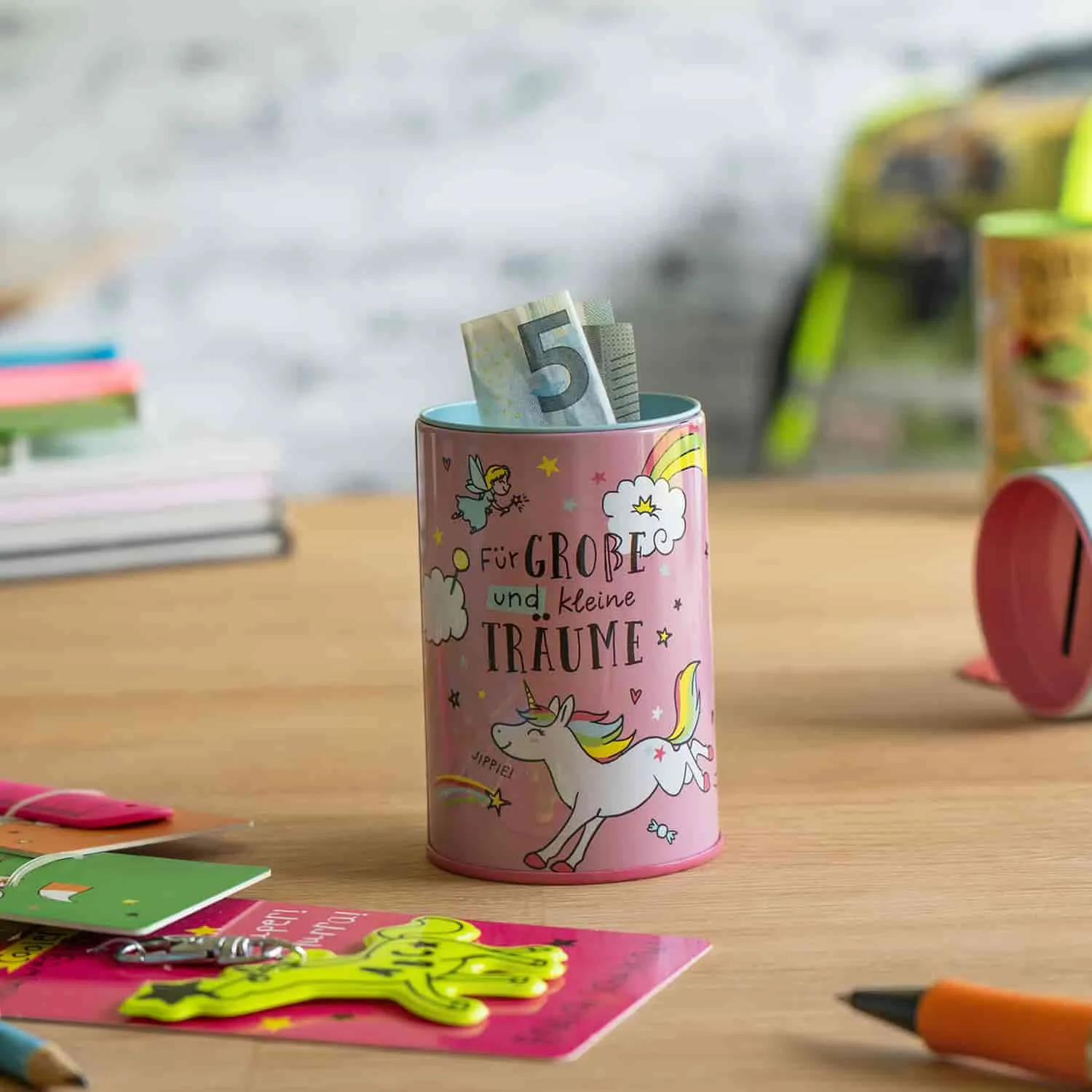 Ein originelles Geschenk für Schulanfänger ist eine unserer Spardosen als Geldgeschenk. Diese kleine Überraschung lässt Kinderaugen strahlen und vermittelt die Vorfreude auf das, was das neue Schuljahr mit sich bringt. Mit einem Geldschein darin kann sich das Kind auch kleine Wünsche erfüllen.
